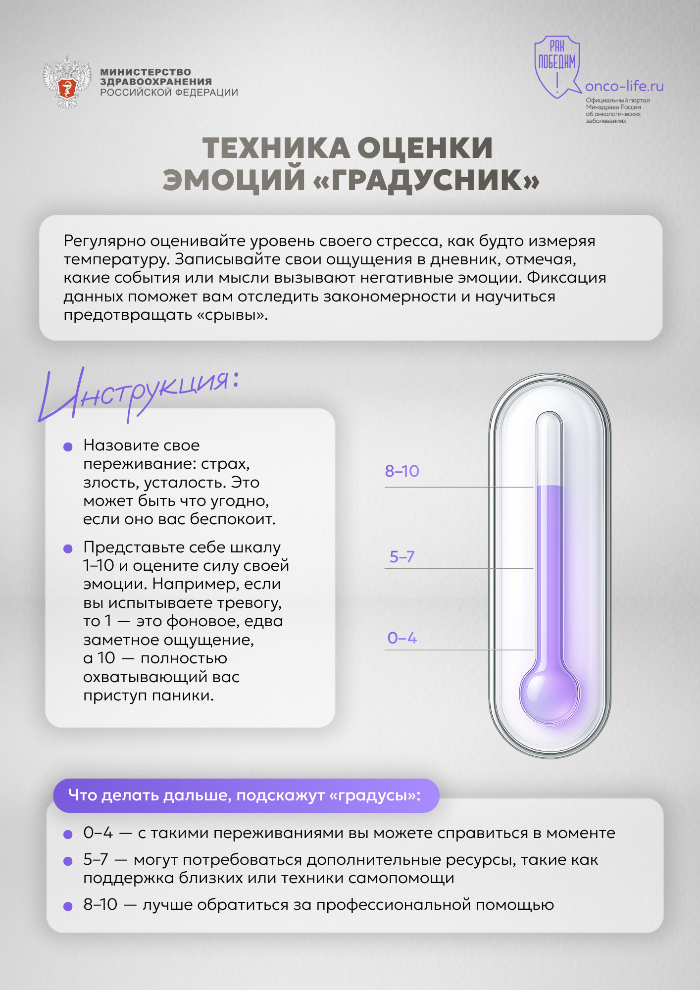 Чтобы лучше понимать свое эмоциональное состояние и вовремя распознавать нарастающее напряжение, воспользуйтесь техникой «Градусник».